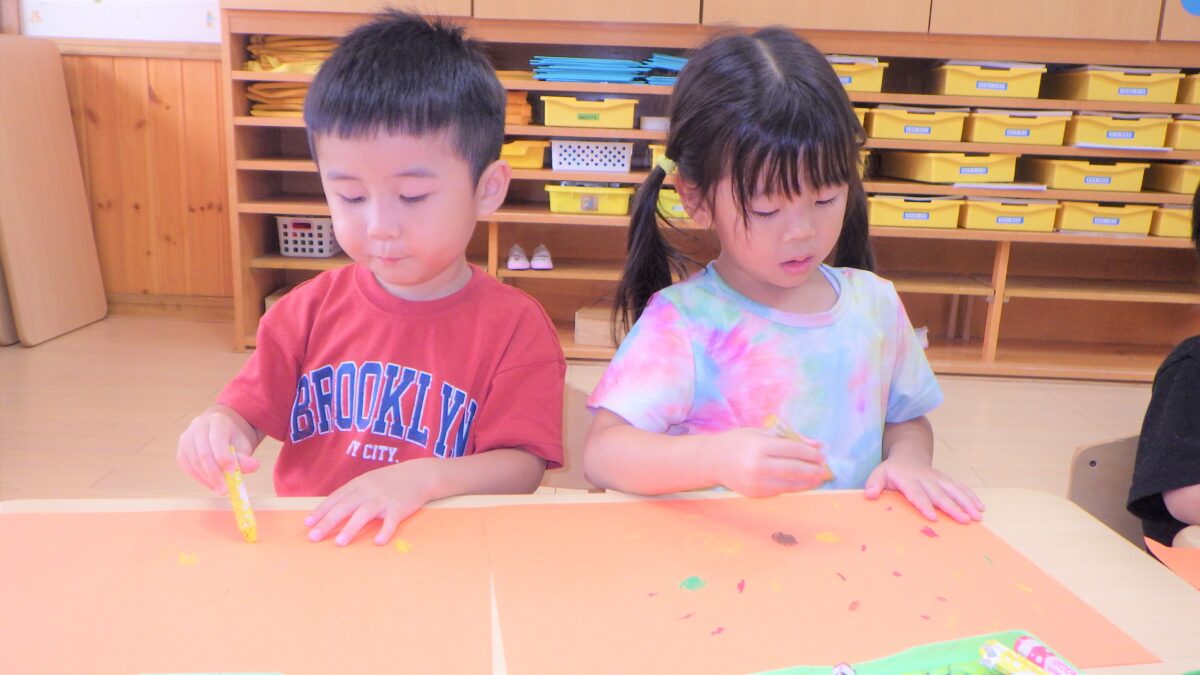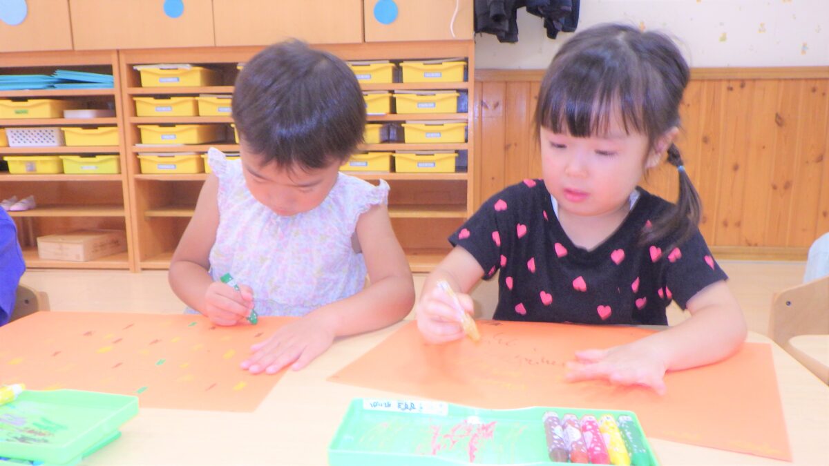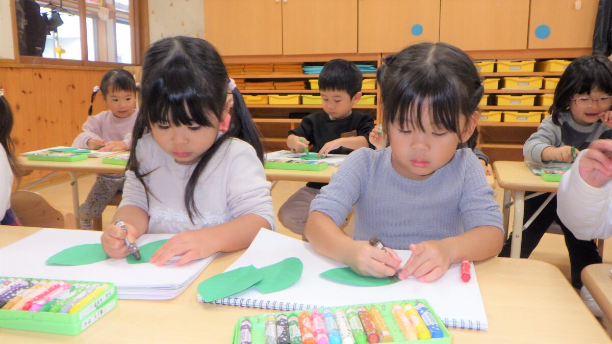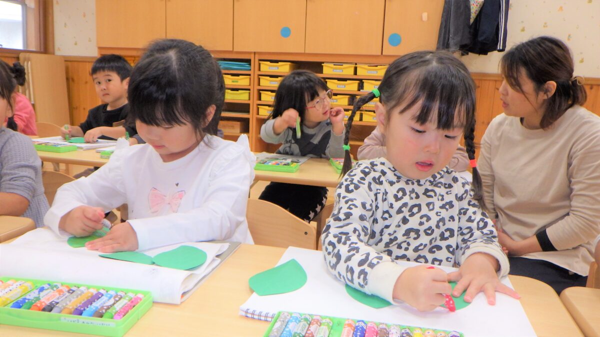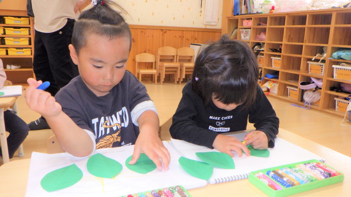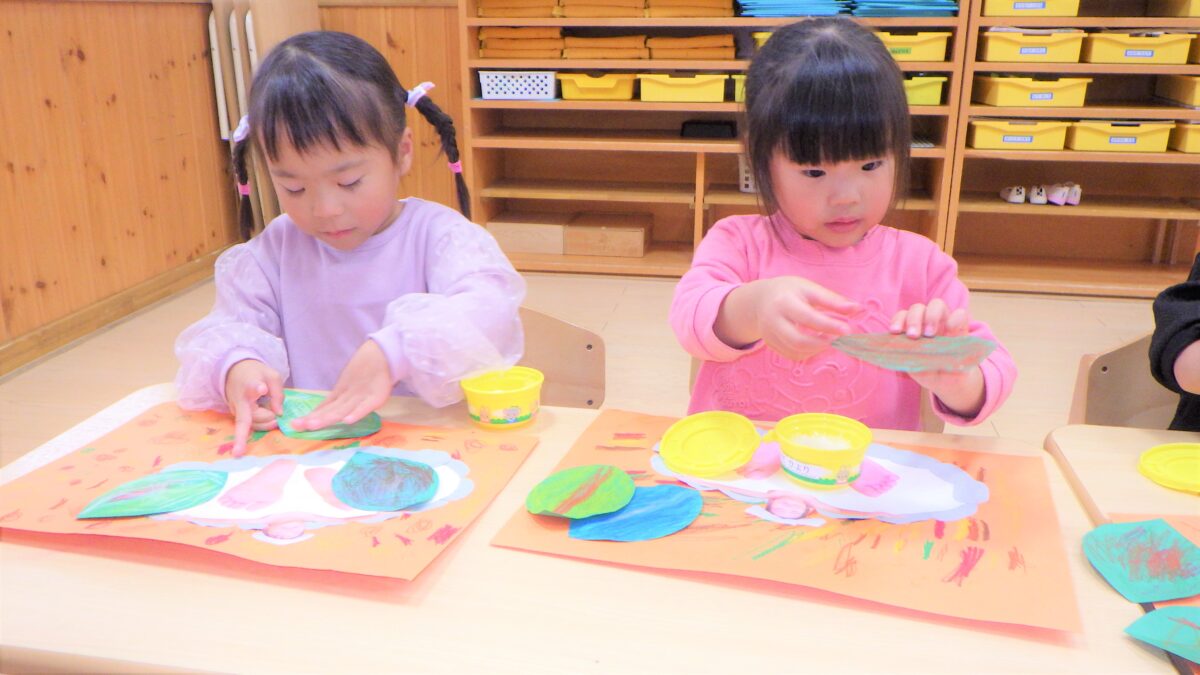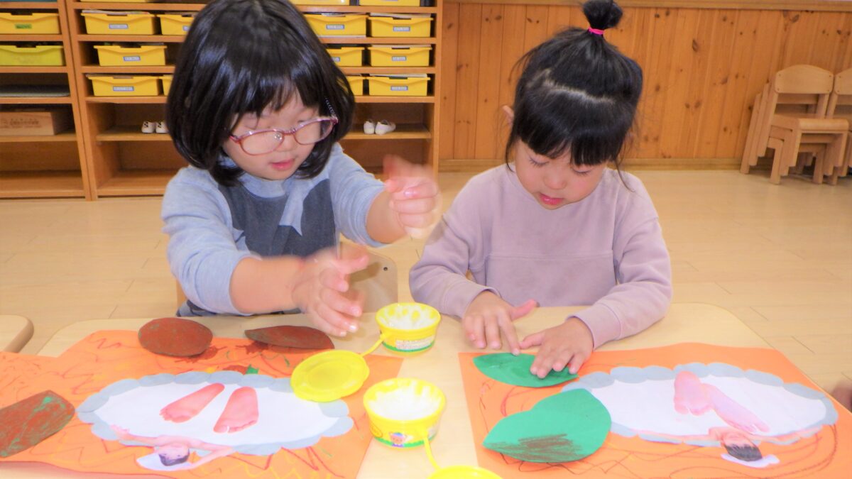 活動日記 DIARY 活動日記 🐇うさぎ組10月 2025年10月31日 今月は、田んぼ、中央公園、お城のお堀、神明神社などたくさん散歩に行って、色んな秋を見つけてきました! 散歩で見つけた葉っぱが赤や黄色に変わっていくことに気付いたので、紅葉をクレヨンで一生懸命表現しました! 新しい記事へ古い記事へ 活動日記一覧に戻る