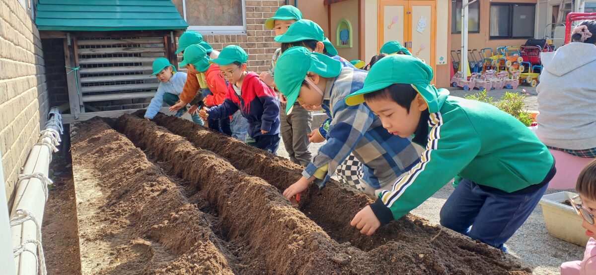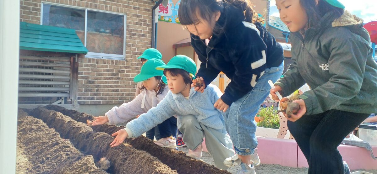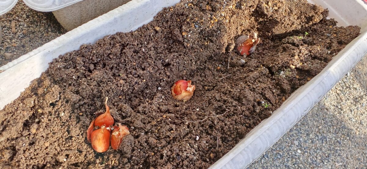 事務室前の花壇にチューチップの球根を植えました🌷