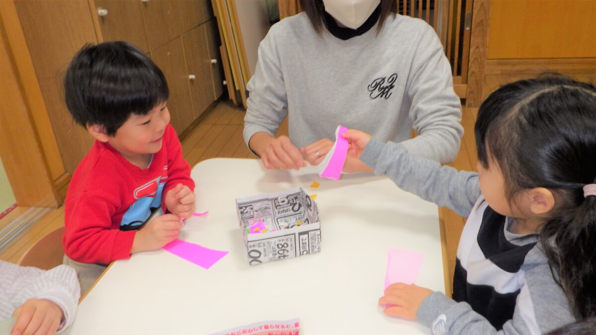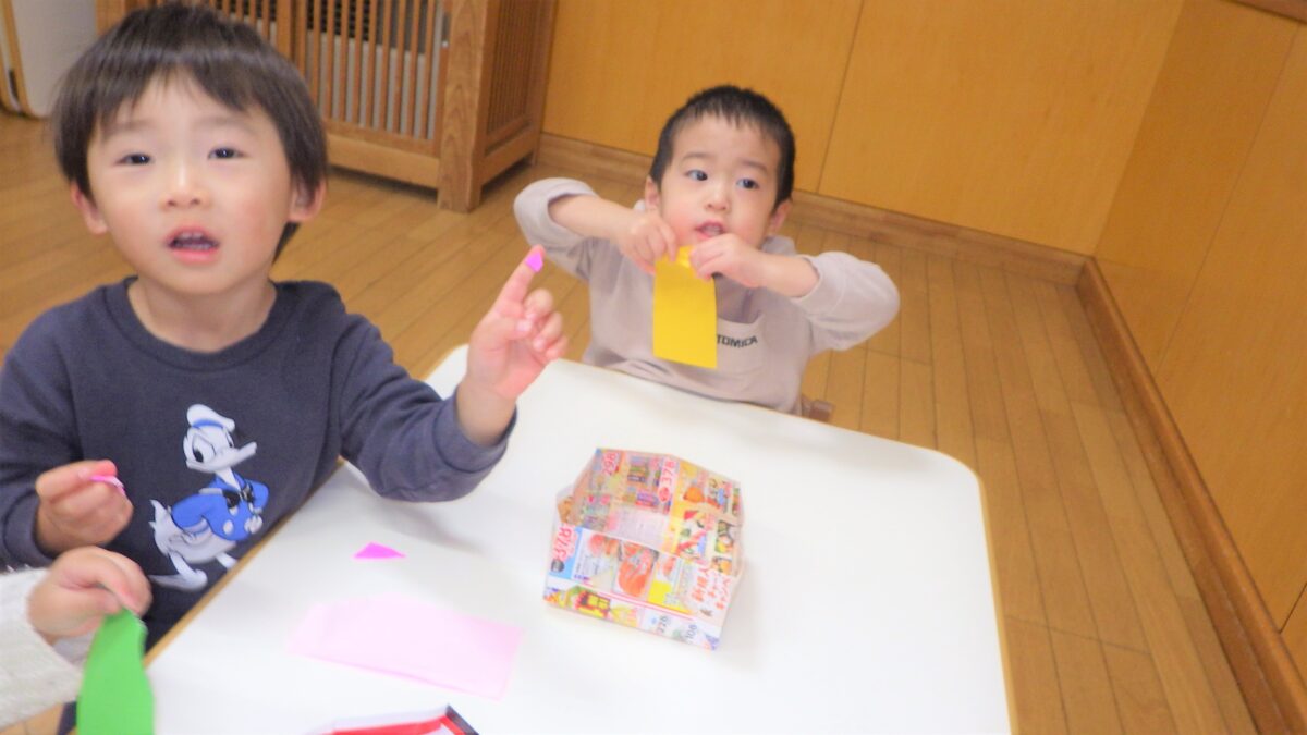 活動日記 DIARY 活動日記 🐿りす組12月 2025年12月27日 粘土遊びをしました。粘土ベラや型抜きを使って色々なものを作りました!ラプンツェルもかわいいでしょ💕 外は寒くてもお部屋でたくさん体を動かしちゃうぞ!ハシゴ渡りにも挑戦‼春より出来ることが増えました。 指先を使って輪つなぎ。輪つなぎのサンタクロース作りをしました🎅紙をちぎって新年のご挨拶ポーズも作りました! 新しい記事へ古い記事へ 活動日記一覧に戻る