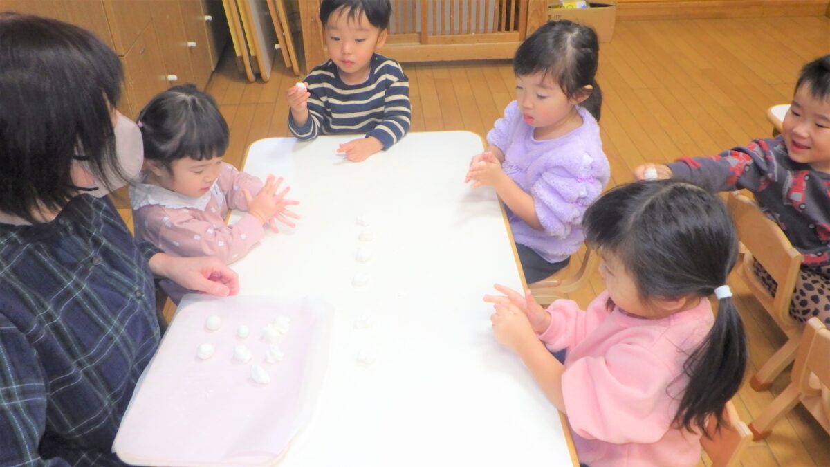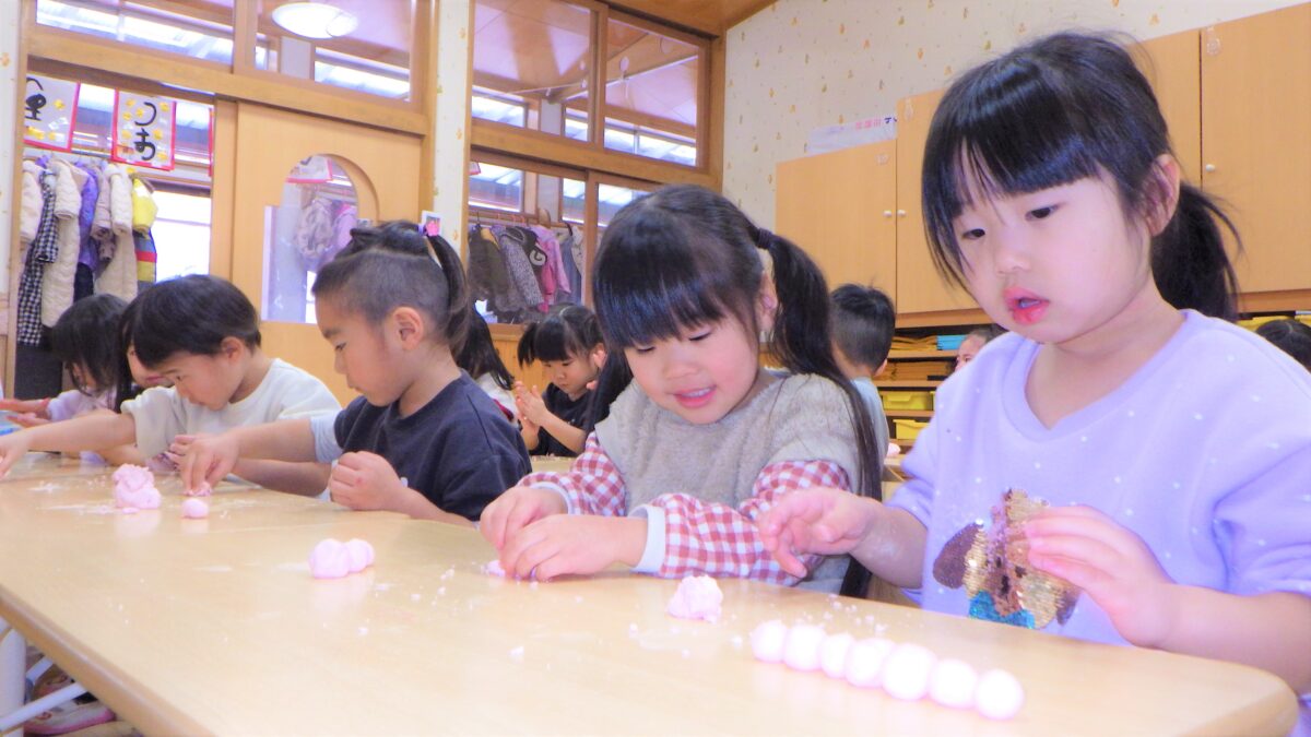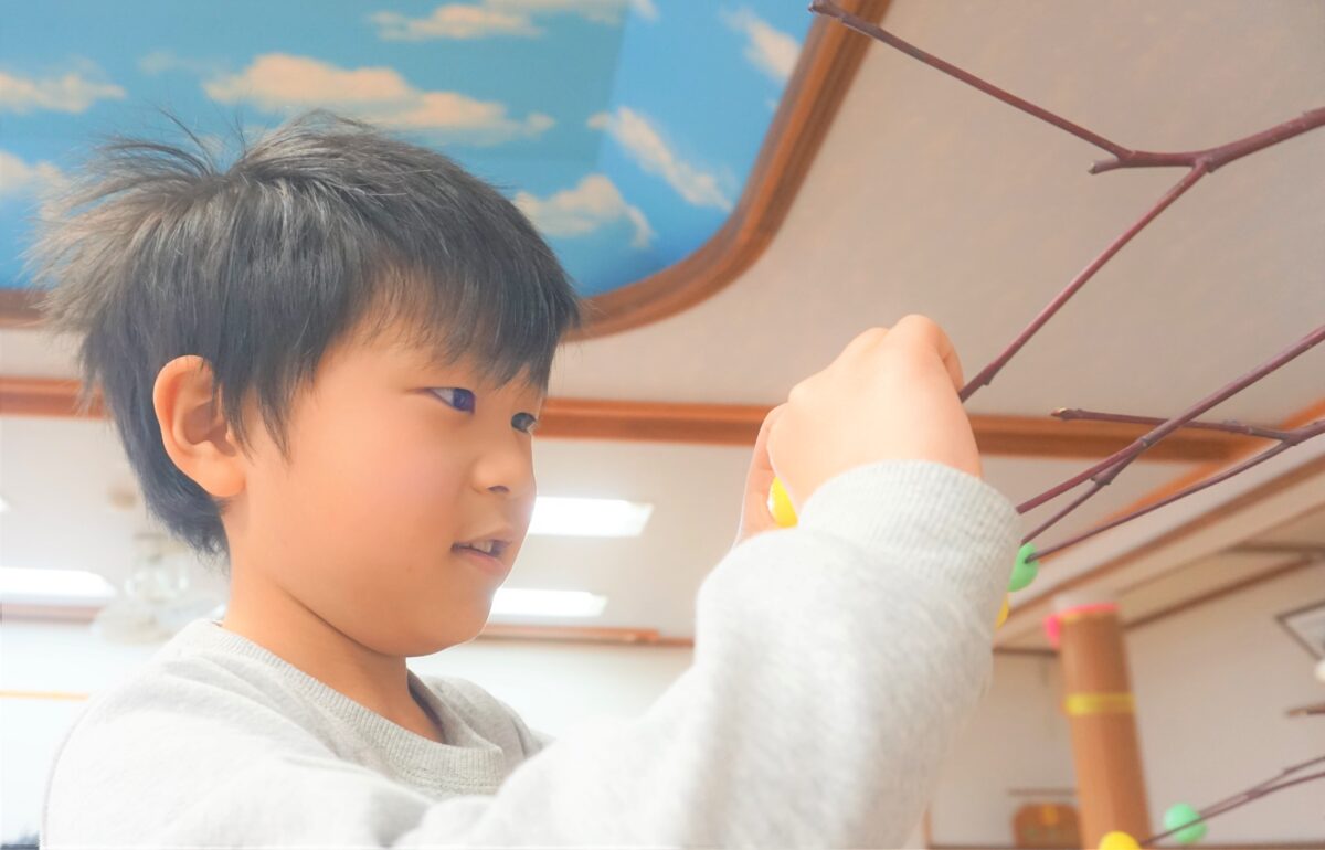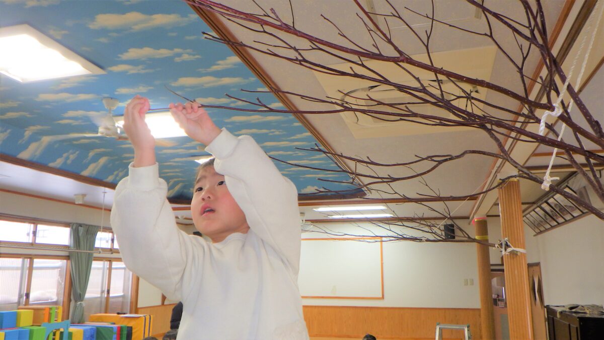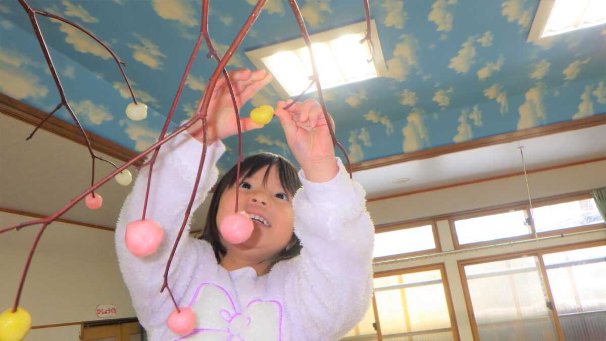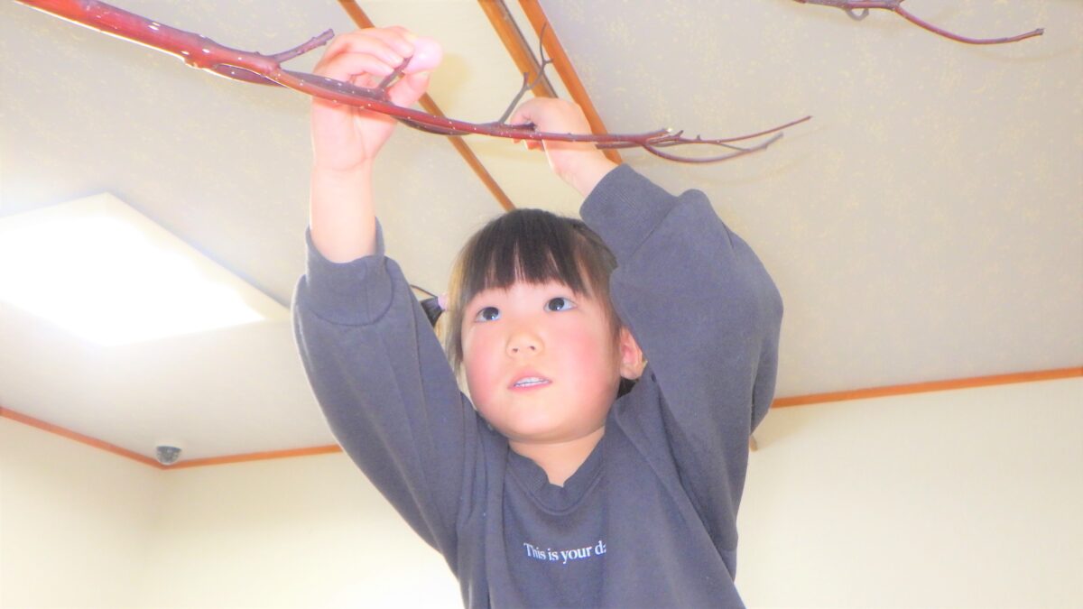 赤、黄、緑、白それぞれのだんごには意味があることを教えてもらったので、「黄色い団子がいい!」「緑色の団子がいい!」と団子の色を理解して若木にだんごを刺す子もいました🍡
