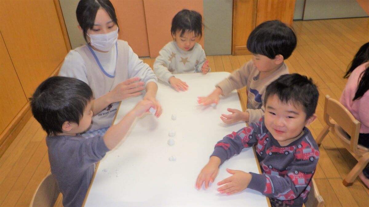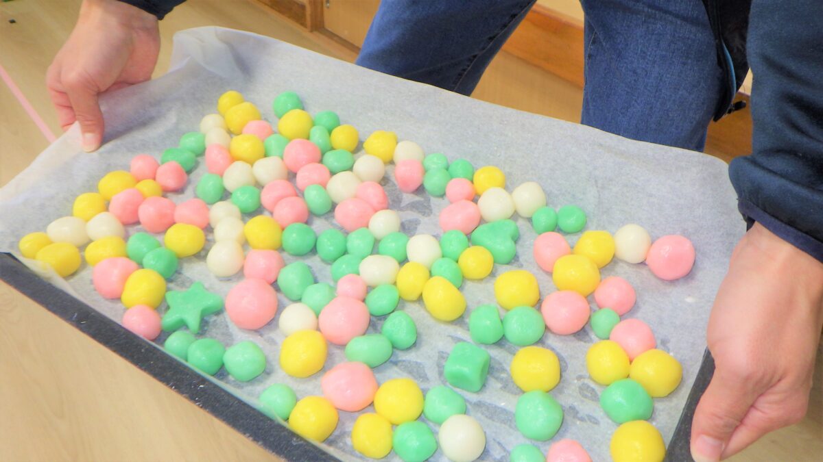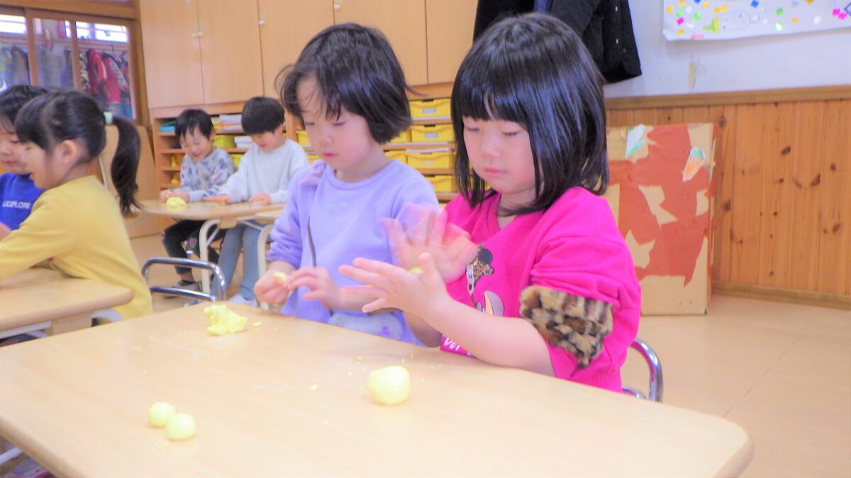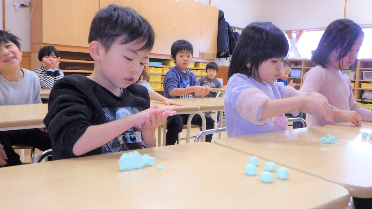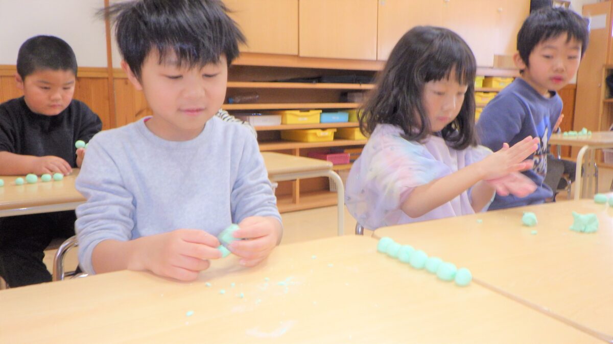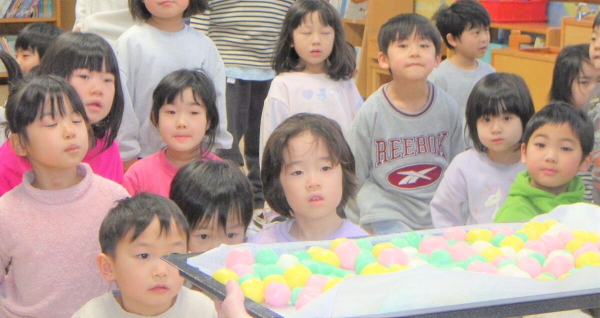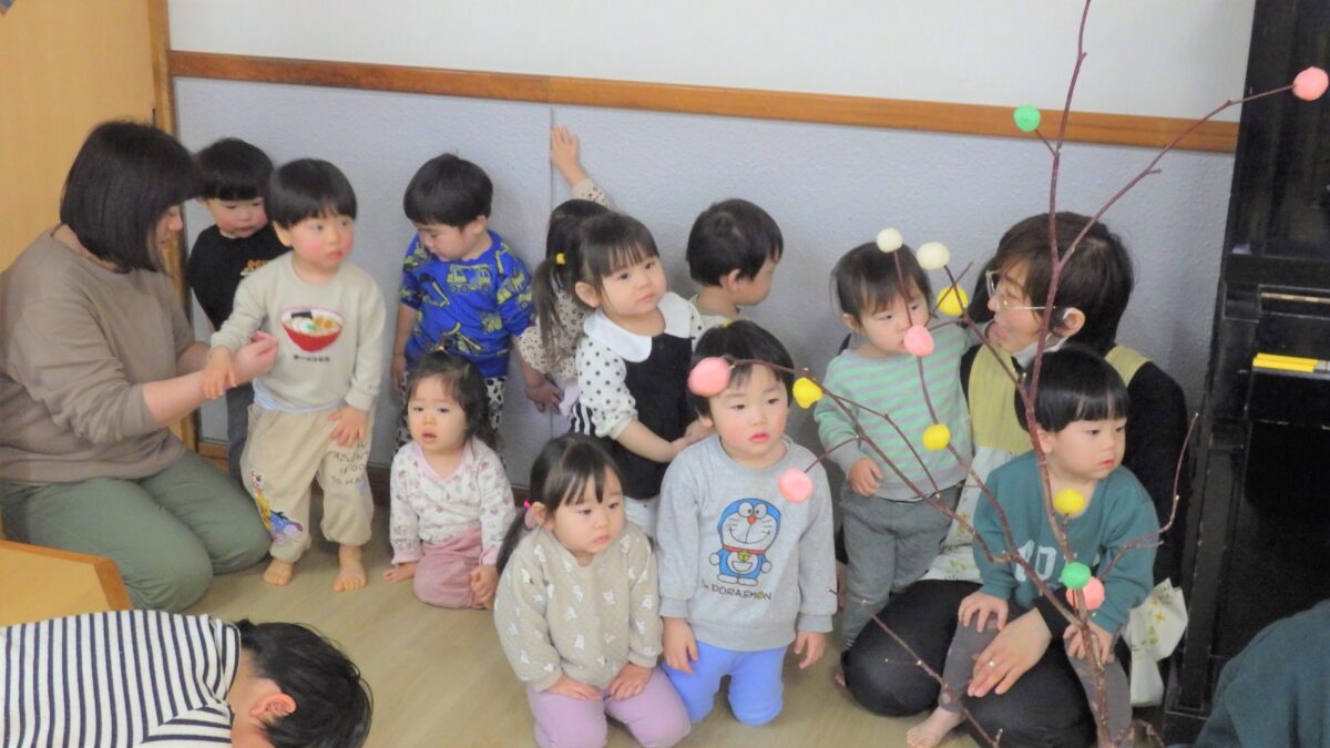 赤、黄、緑、白それぞれのだんごには意味があることを教えてもらったので、「黄色い団子がいい!」「緑色の団子がいい!」と団子の色を理解して若木にだんごを刺す子もいました🍡