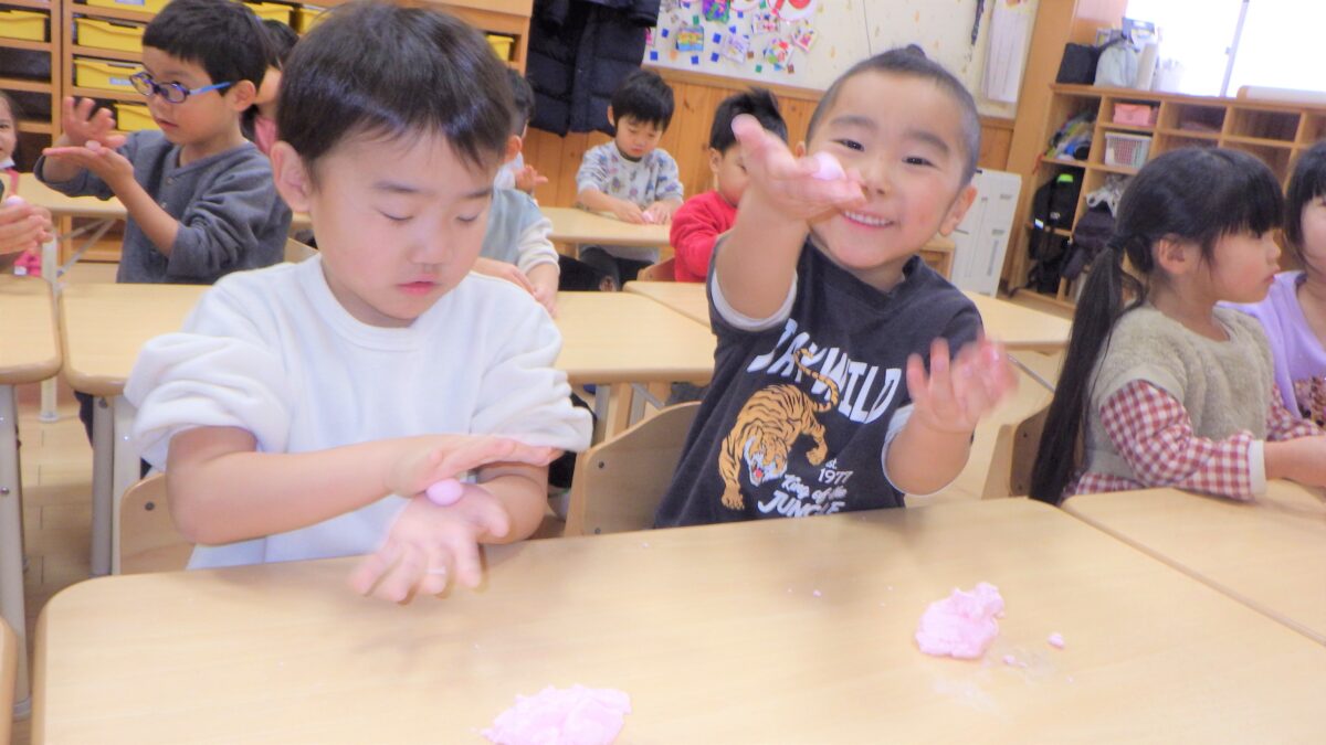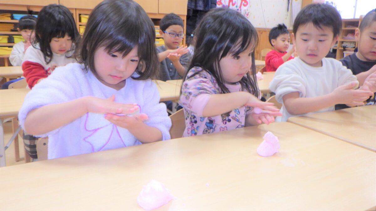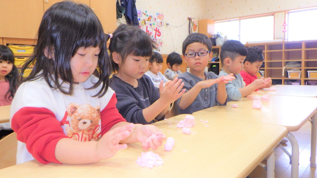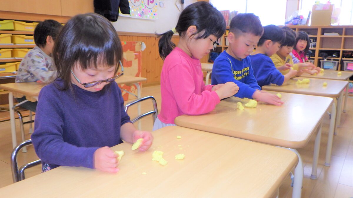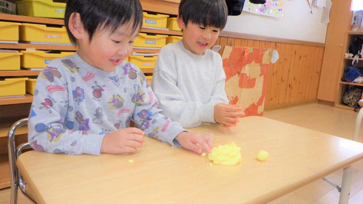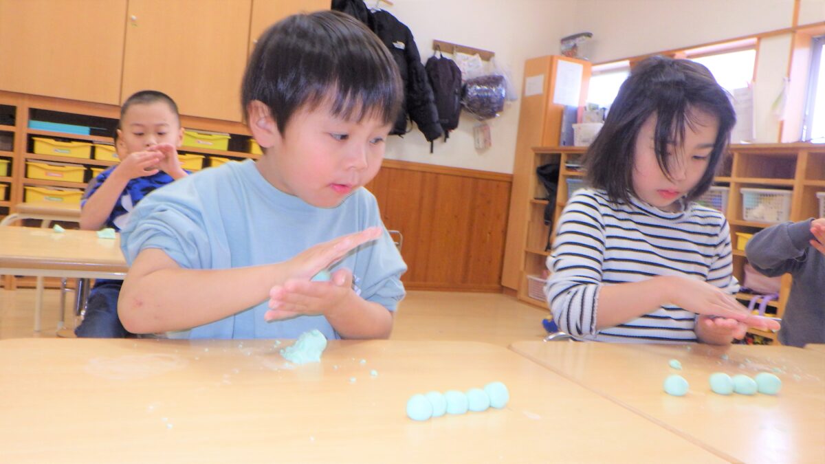 赤、黄、緑、白それぞれのだんごには意味があることを教えてもらったので、「黄色い団子がいい!」「緑色の団子がいい!」と団子の色を理解して若木にだんごを刺す子もいました🍡