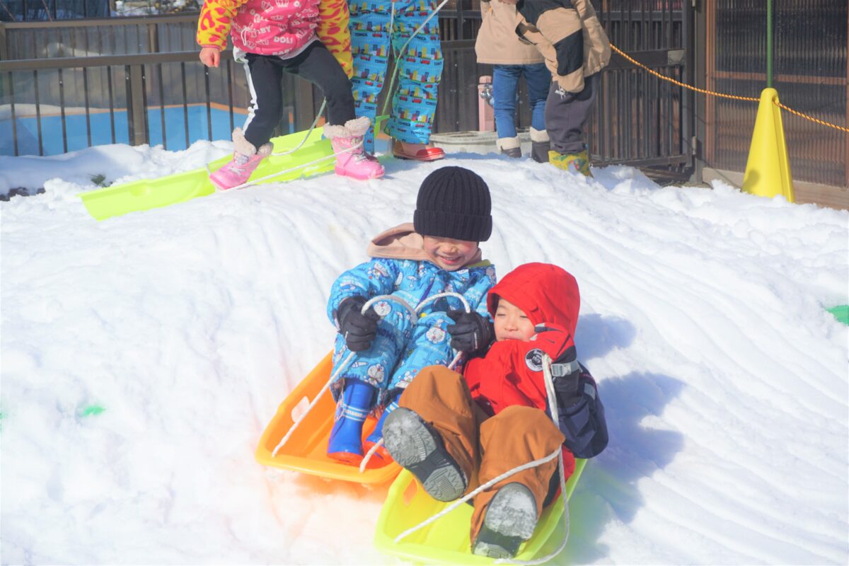 活動日記 DIARY 活動日記 🐘ぞう組2月 2026年2月28日 今年の雪は去年に比べるとだいぶ少なかったですが、それでも雪の積もった日は外で雪あそびをしました。ソリに乗る子や雪合戦を楽しむ子、保育者と一緒に雪だるまを作って盛り上がることができました。 身体の使い方を覚えるために跳び箱にもチャレンジ!力強く踏み込んで跳び箱を越えるととても嬉しそうな顔を見せてくれます。どんどん練習して、みんなで跳べるようになりたいです。 新しい記事へ古い記事へ 活動日記一覧に戻る