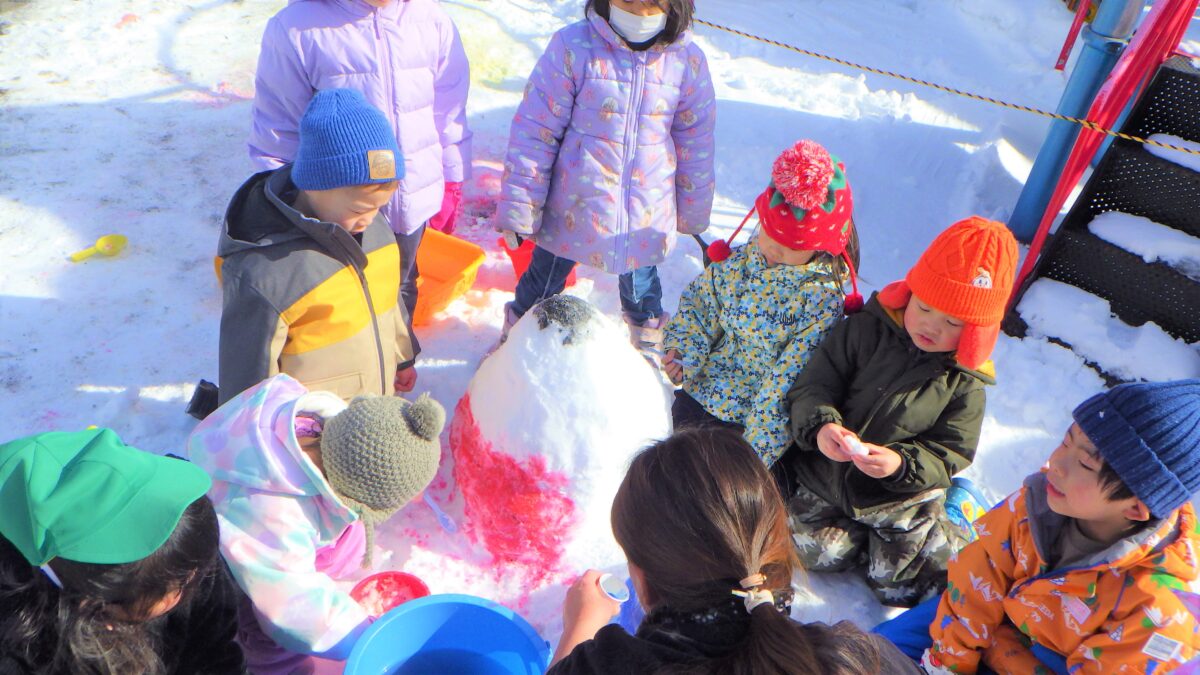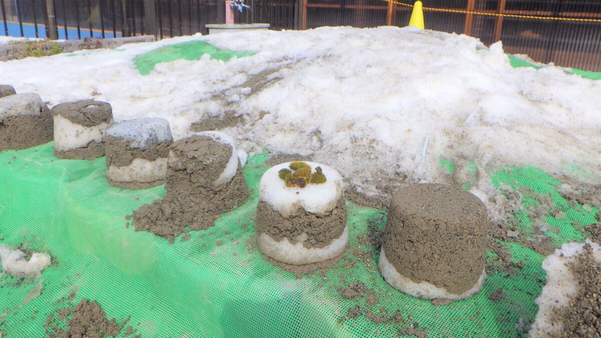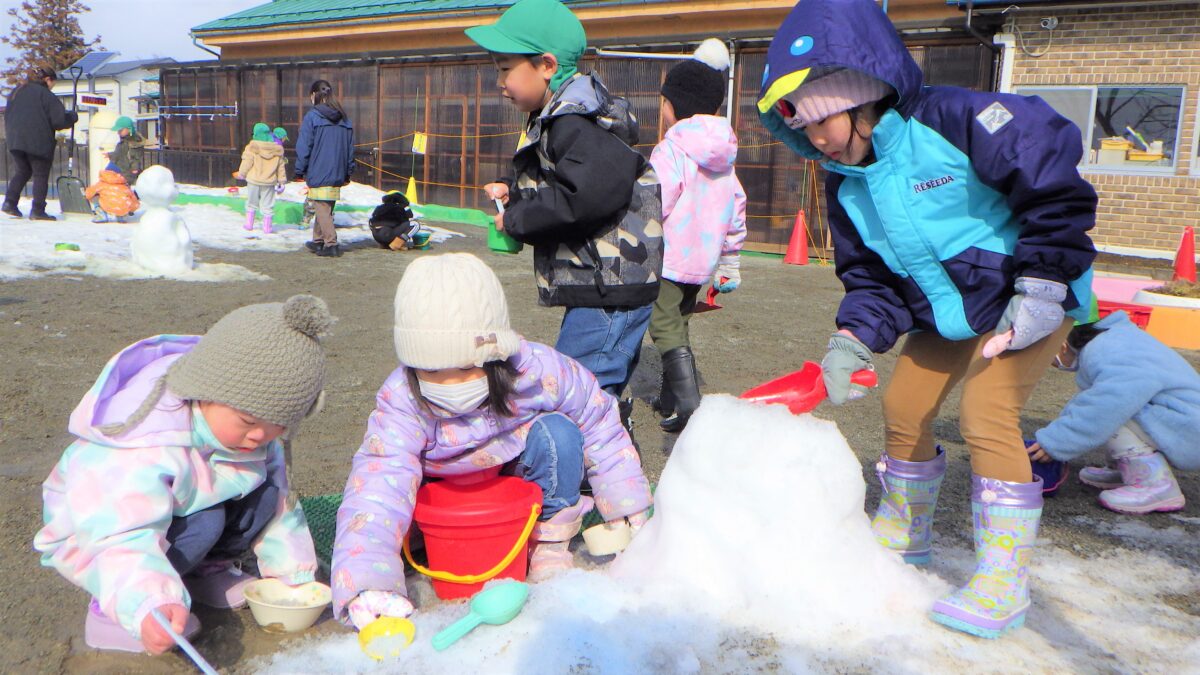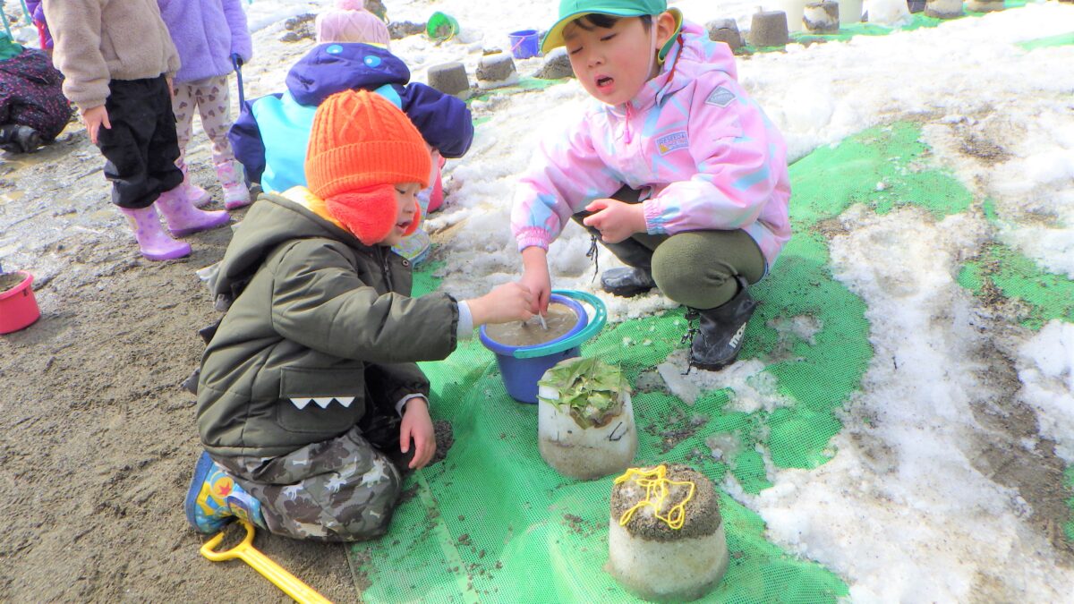 雪が溶けてくると、砂が見えてくると遊びもひろがり、ケーキ屋やさんなどのごっこ遊びも盛り上がりました。