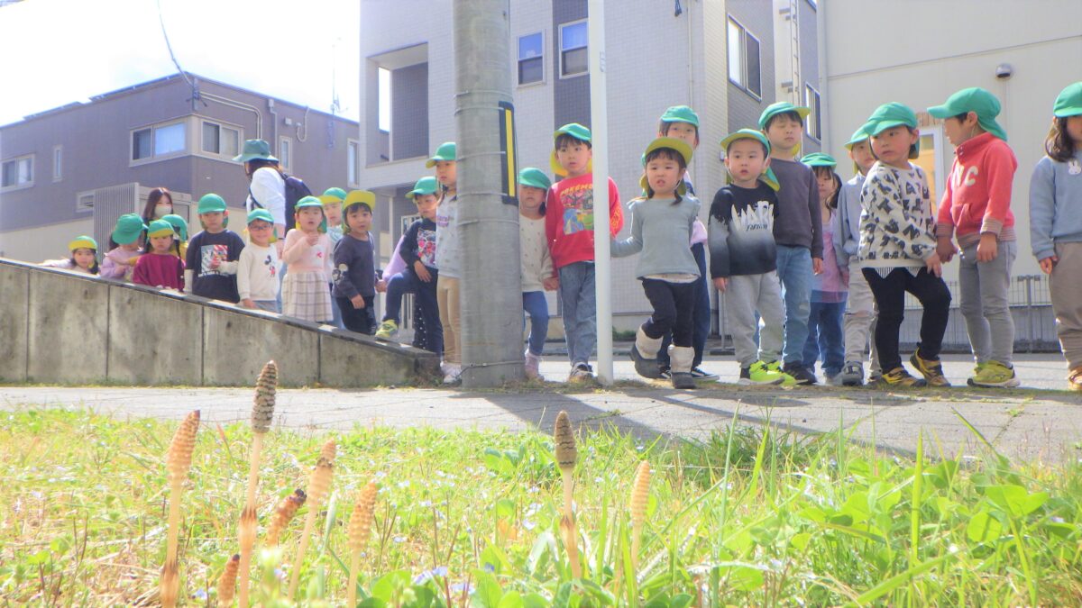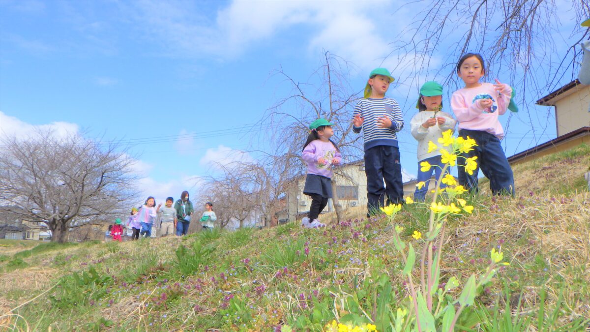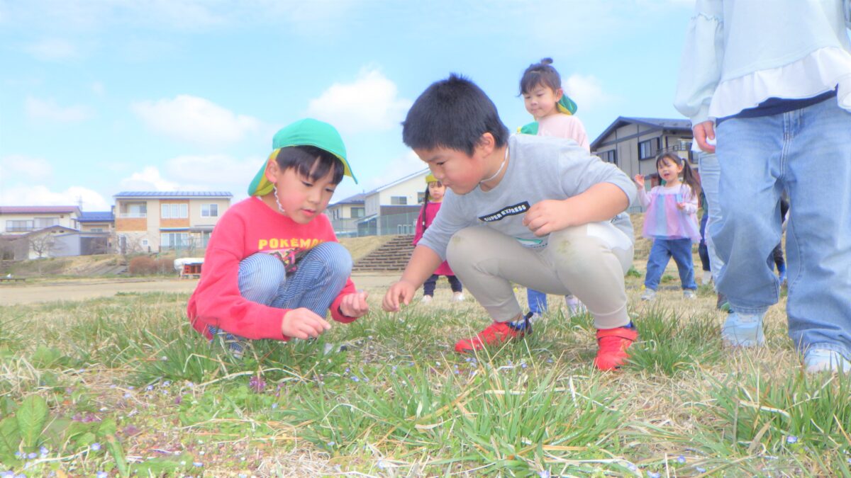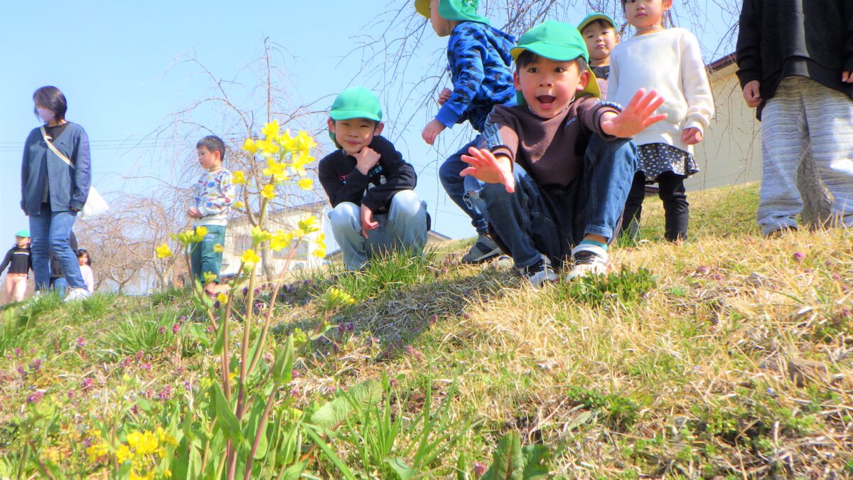 うさぎ組、きりん組と一緒に散歩に行きました!オオイヌノフグリ、ヒメオドリコソウ、スイセン、つくし、菜の花などたくさんの春を見つけることができました!