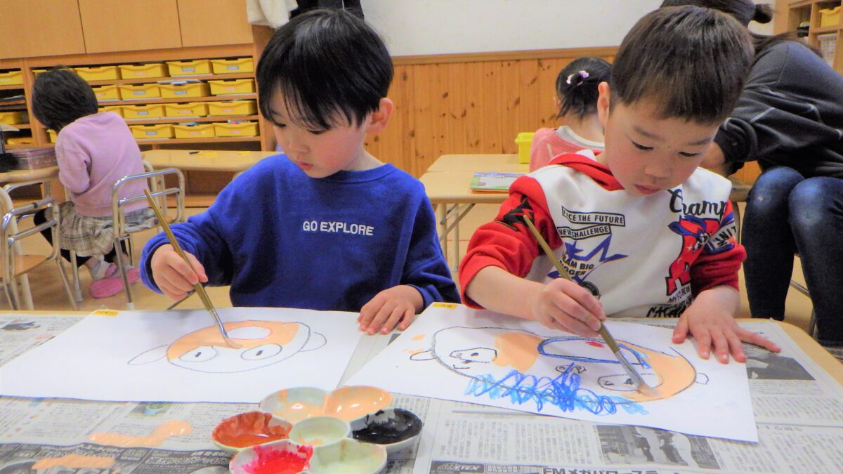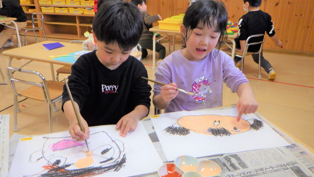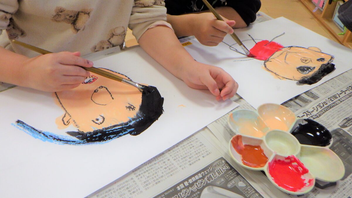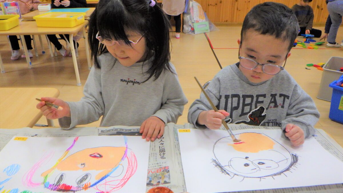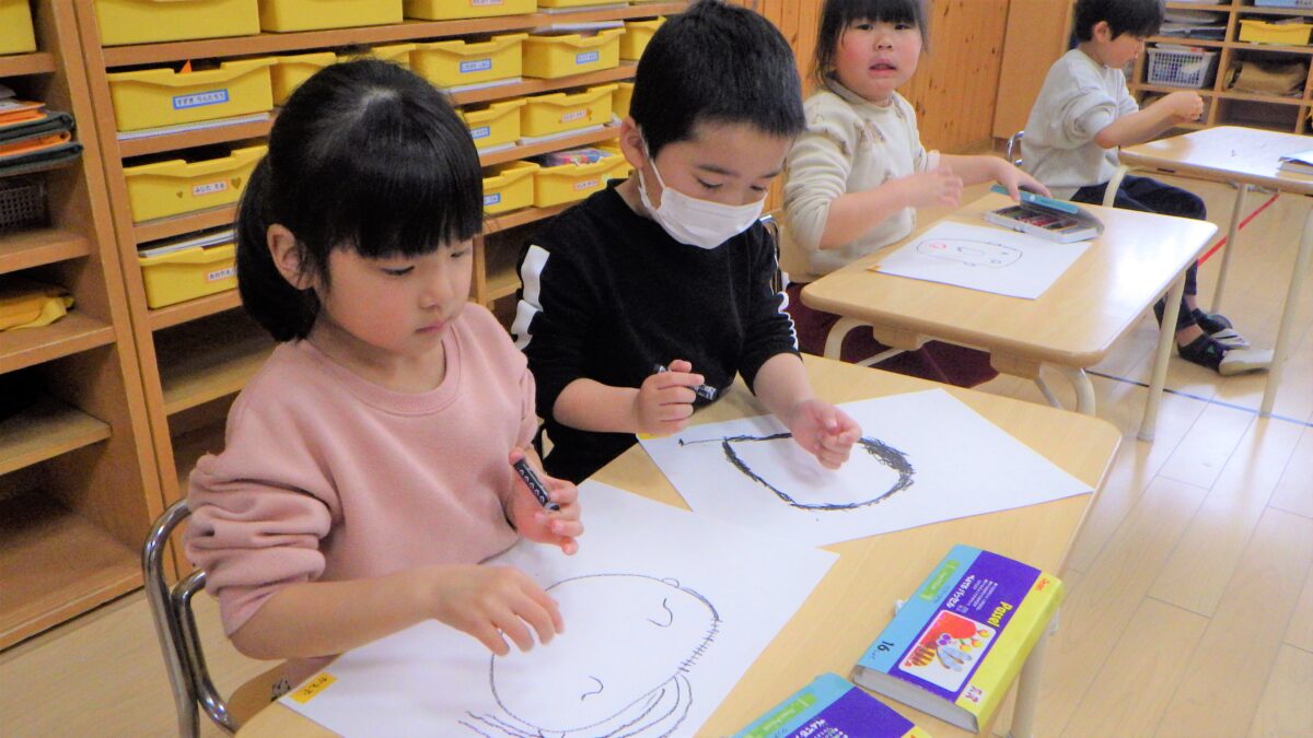 3月の製作は【似顔絵】。4月に描いたものと比べると、一人ひとりの成長を感じました。