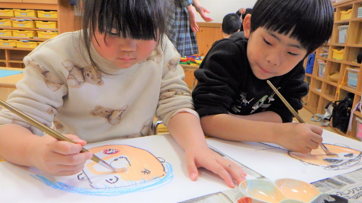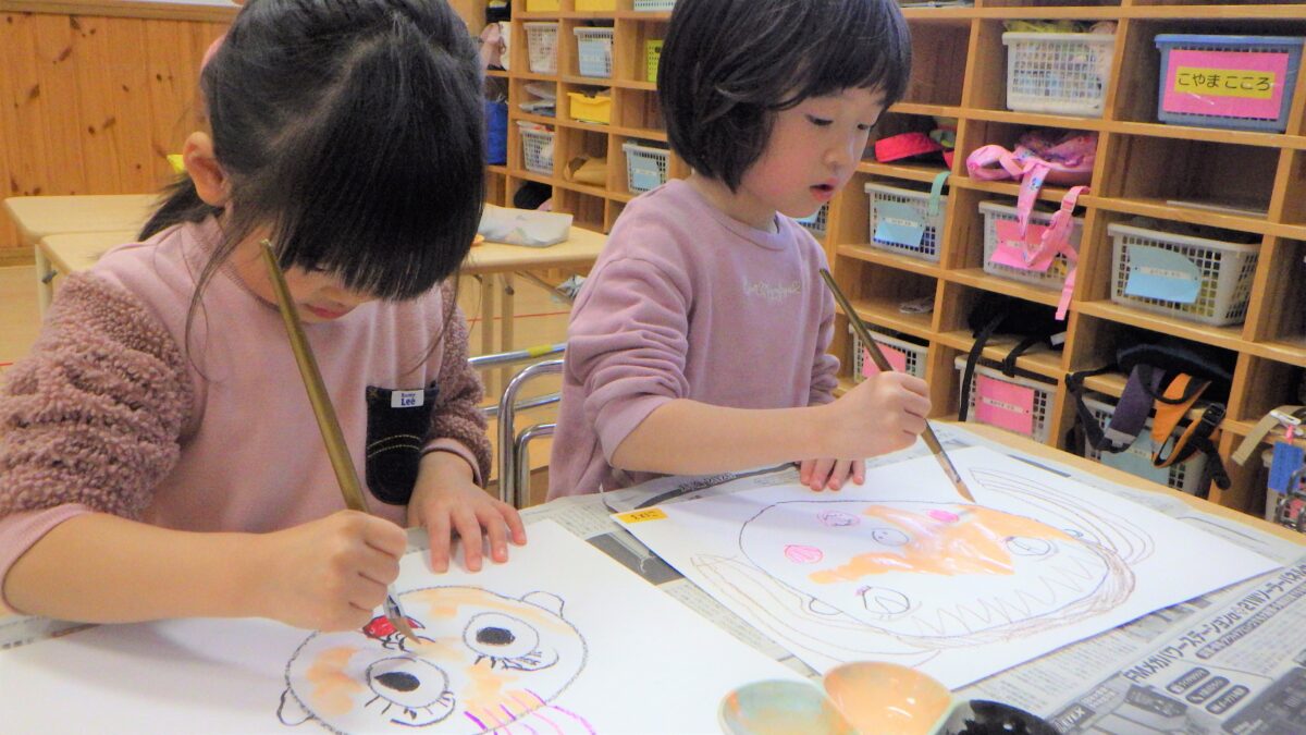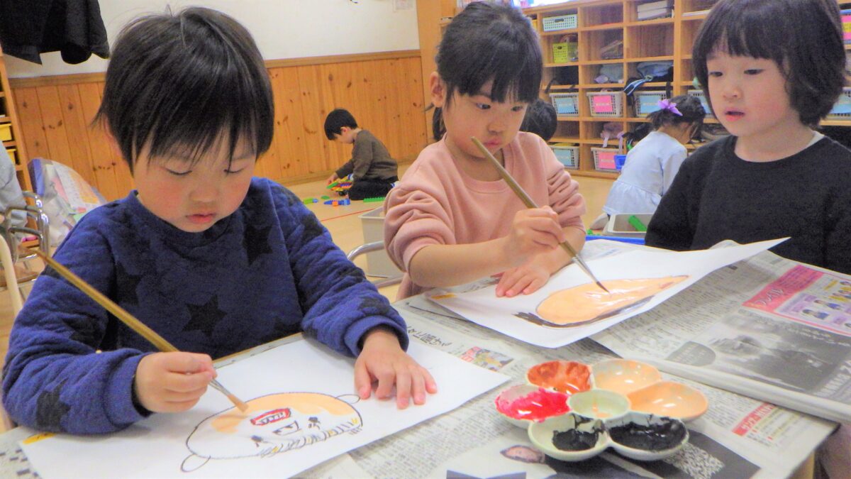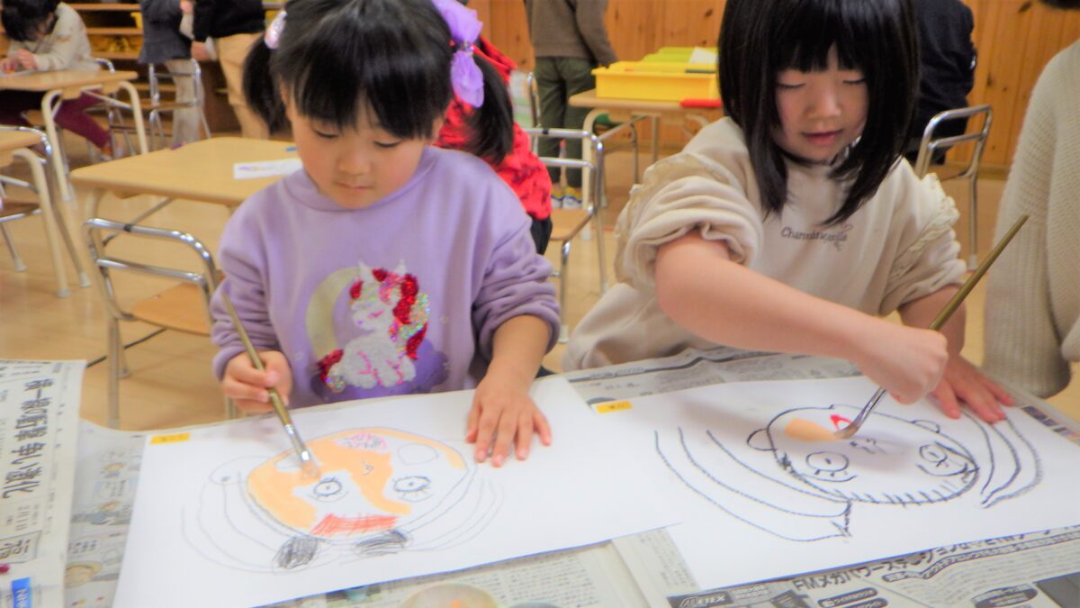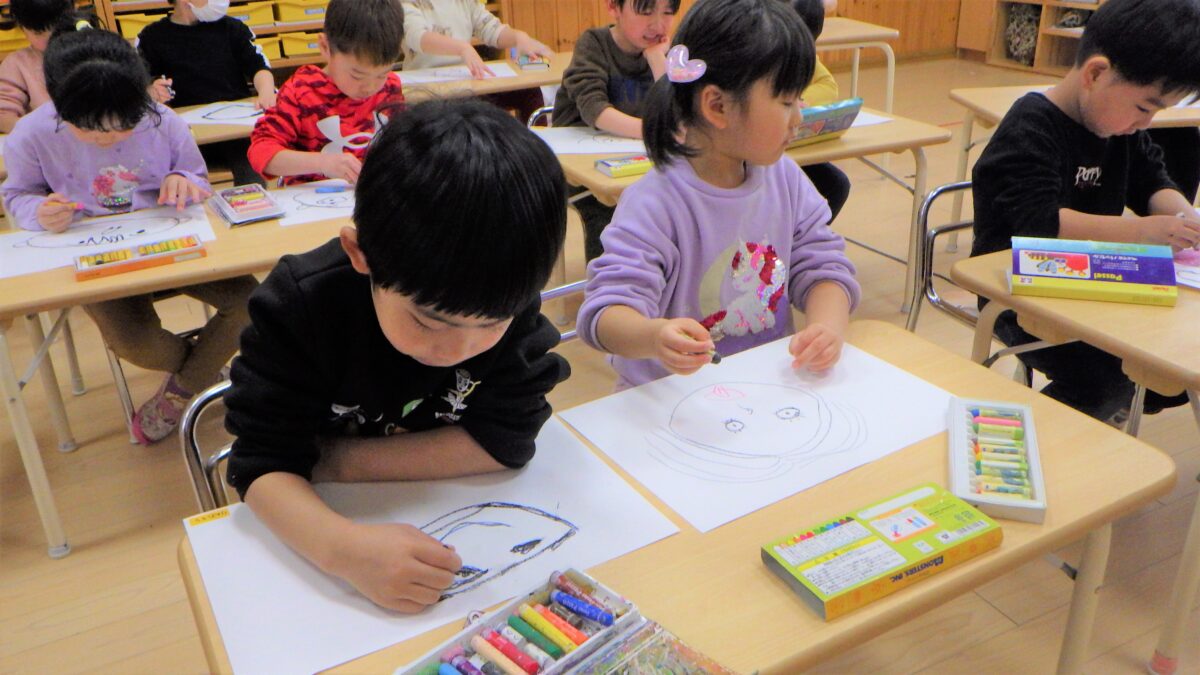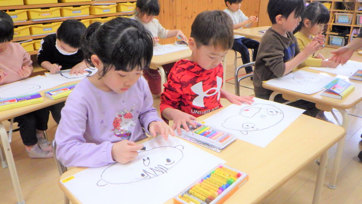 3月の製作は【似顔絵】。4月に描いたものと比べると、一人ひとりの成長を感じました。