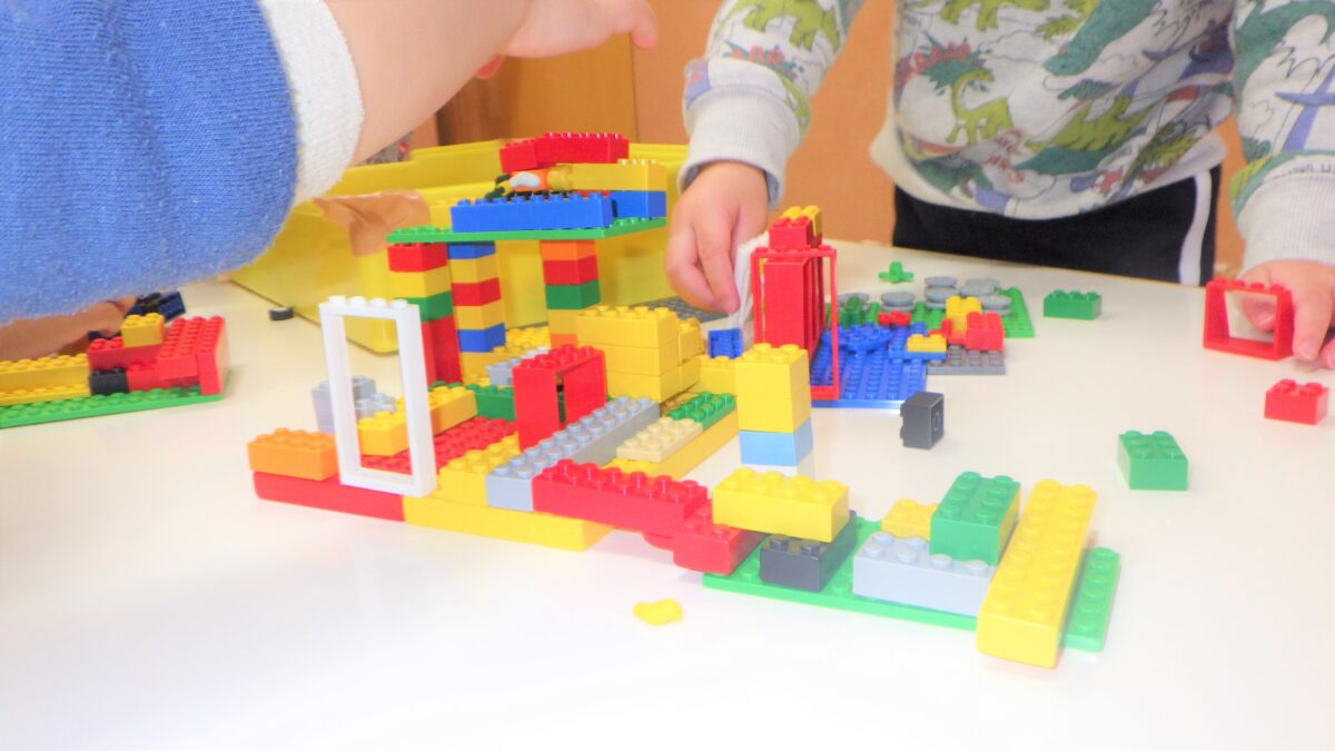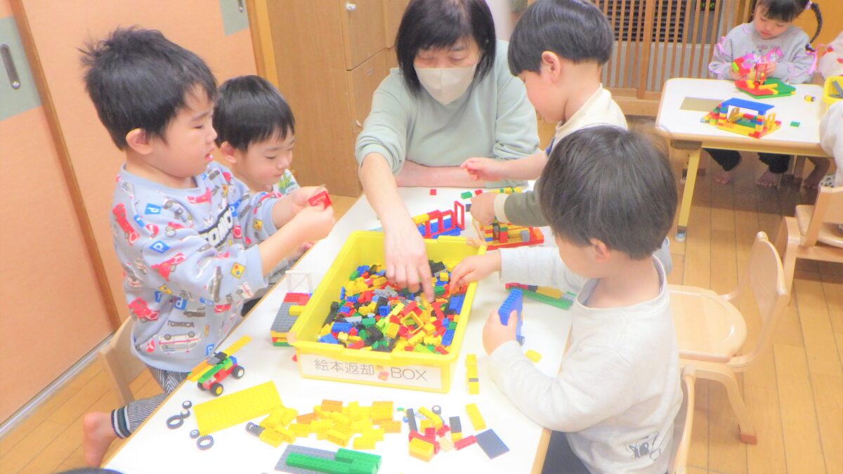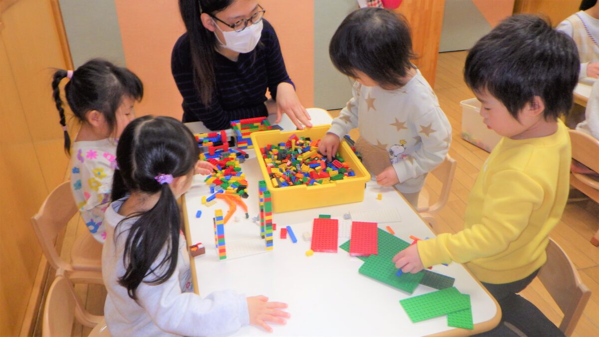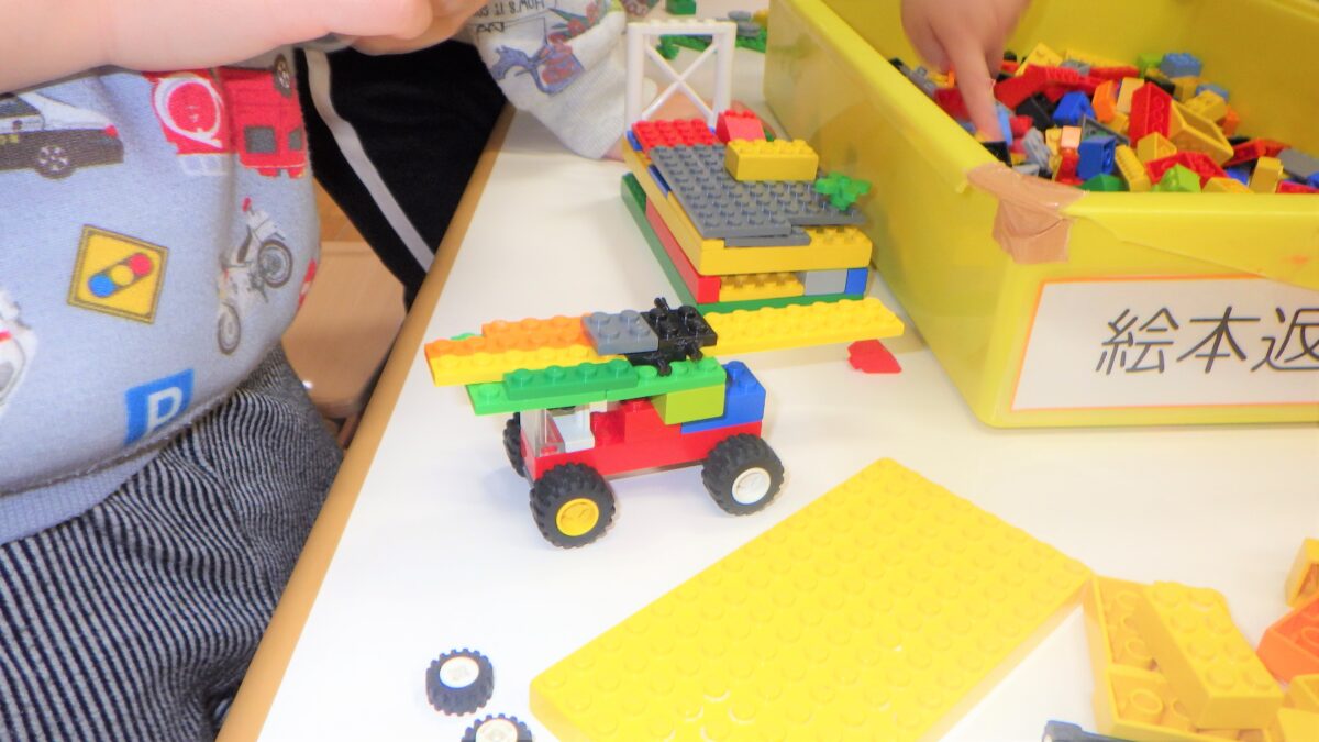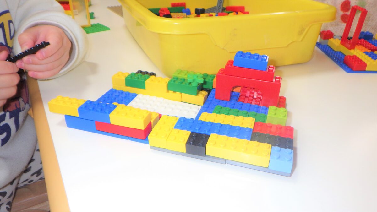 指先を使って小さなブロックでもあそべるようになったよ!通称“チビブロック”に夢中です!