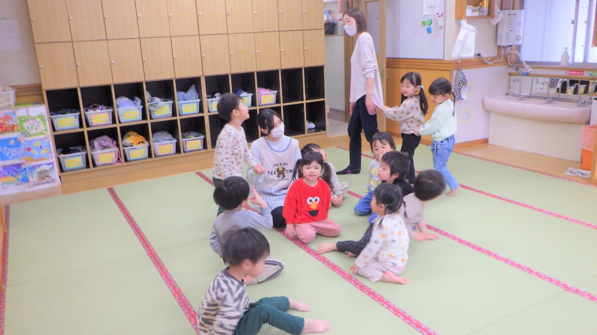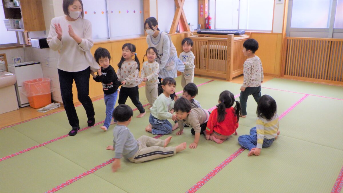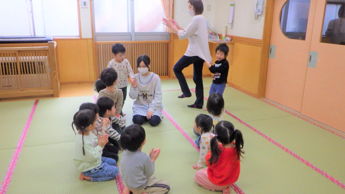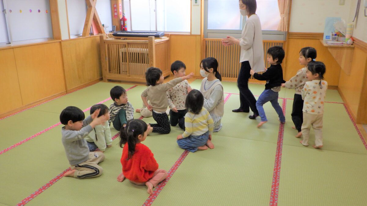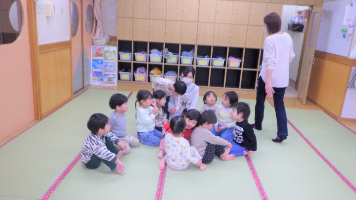 みんなで“うたあそび”をしました!『からすかずのこ』『ひとりのぞうさん』長く繋がっていくのが楽しかったね!