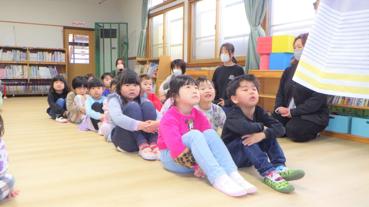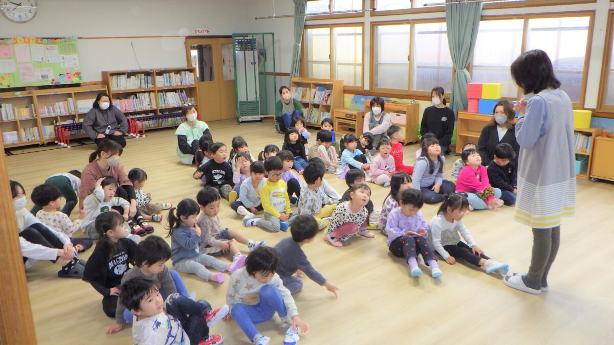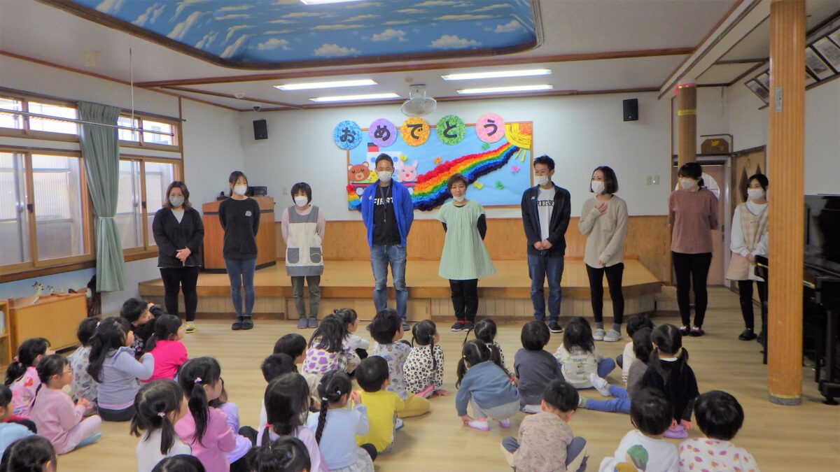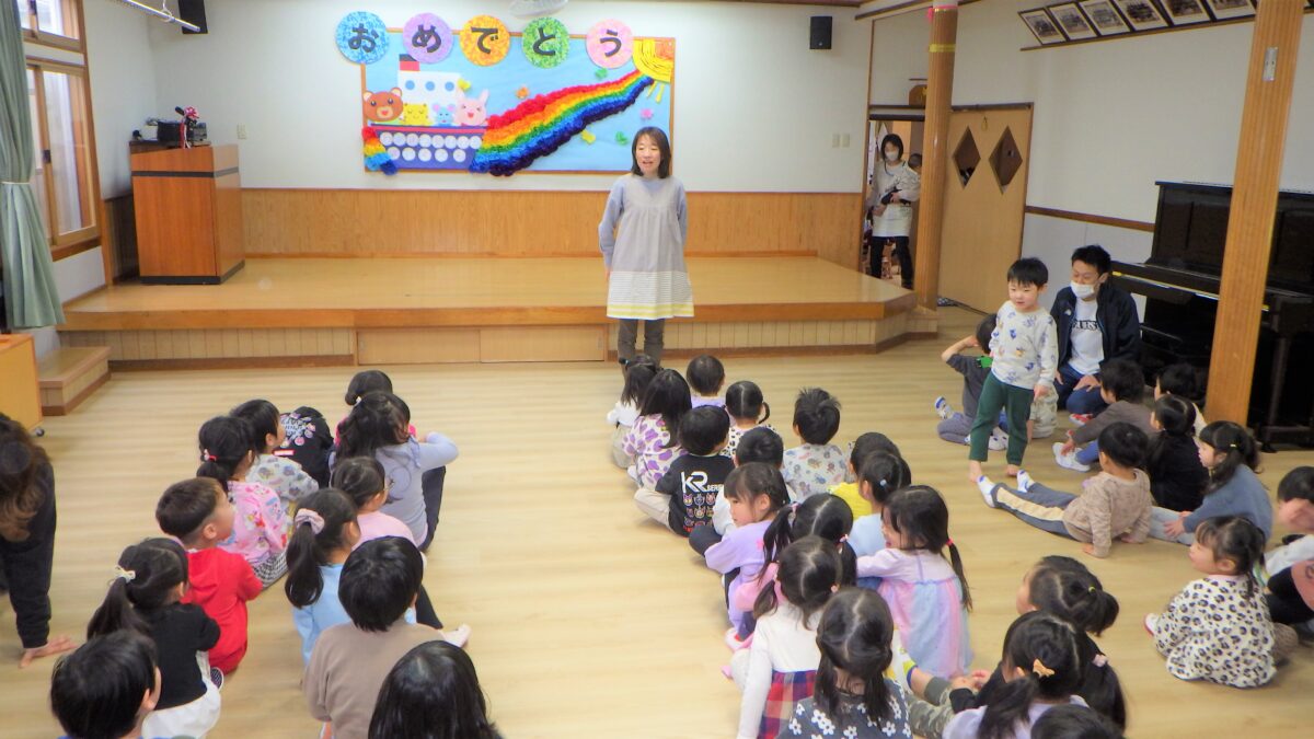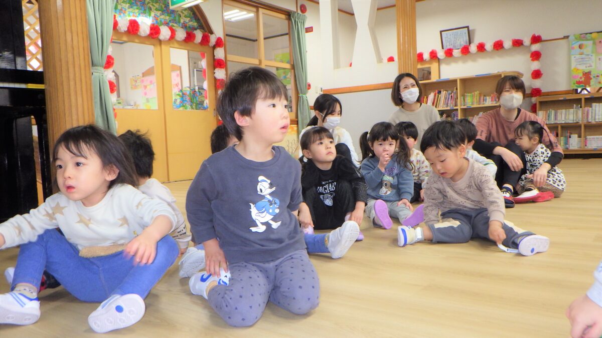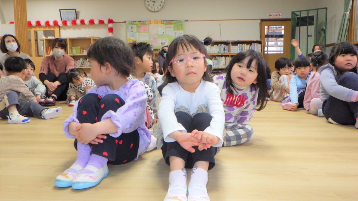 うさぎ組、きりん組、ぞう組がホールに集まって進級式をしました。