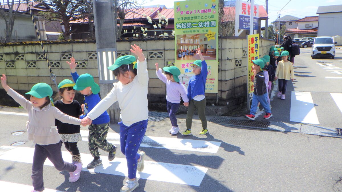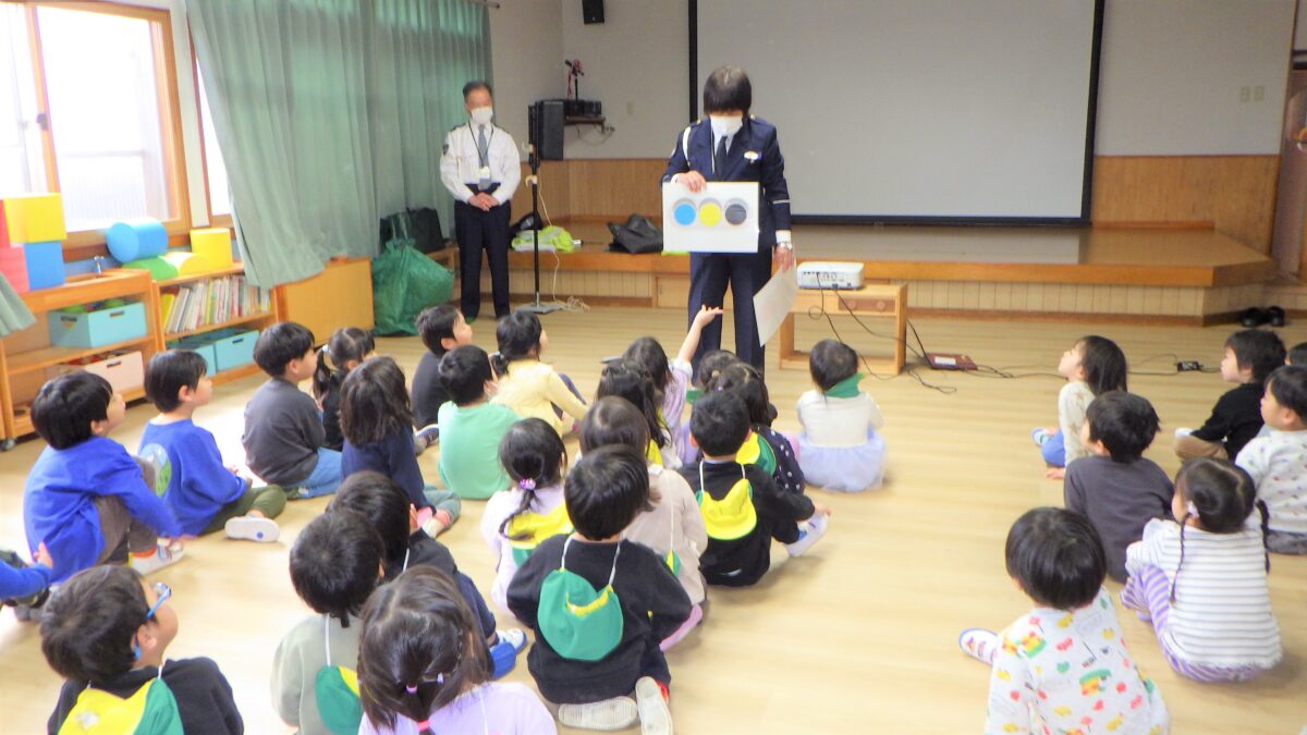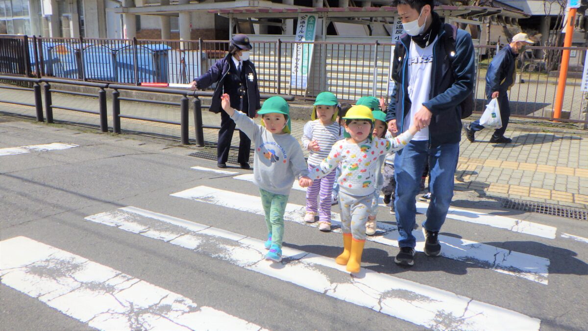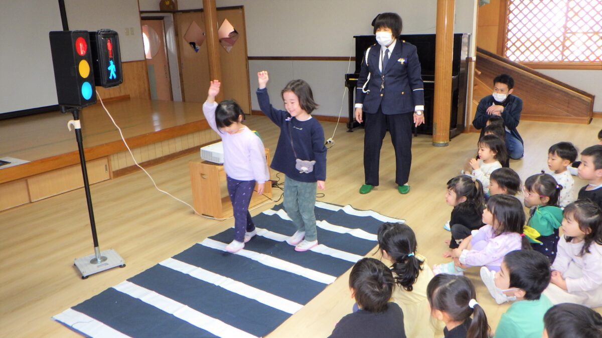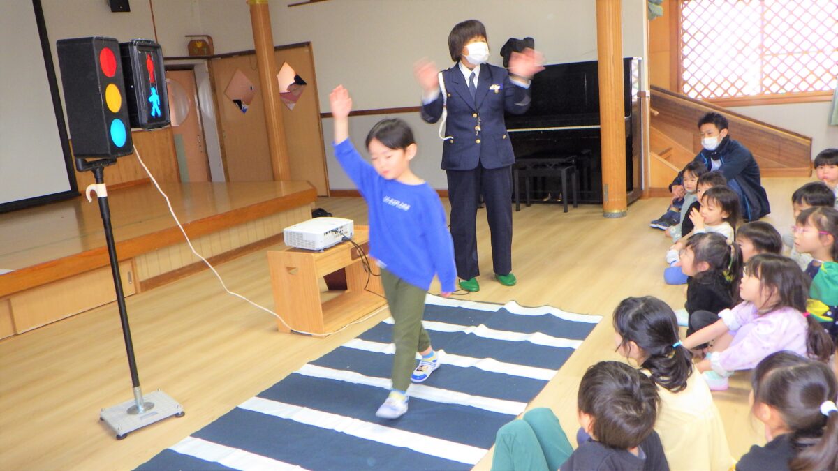 活動日記 DIARY 活動日記 前期交通安全教室🚥 2026年4月3日 うさぎ組、きりん組、ぞう組がホールに集合し、交通指導員より交通ルールについての話を聞いて、道路を歩いてきました。道路の歩き方、信号機の見方、横断歩道の渡り方など、就学に向けとても大事な交通ルールを改めて覚えました! 古い記事へ 活動日記一覧に戻る